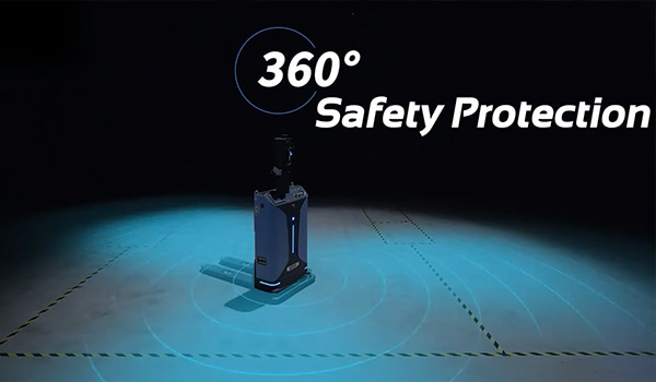 障害物回避レーザーや3Dカメラなどのセンサーで360°保護し、安全規格ISO3691-4に適合させることで安全性を確保します。